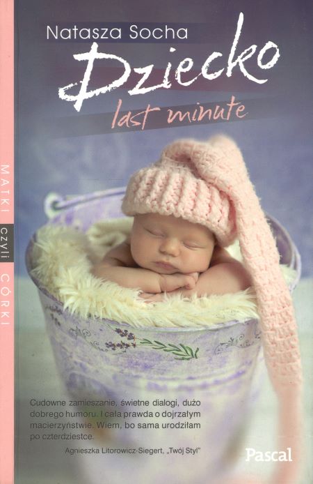 Kalina ma 46 lat i jest w ciąży z mężczyzną, którego poznała zaledwie kilka tygodni temu. Nieodpowiedzialność? Kryzys wieku średniego? A może późne macierzyństwo jest najpiękniejsze - jak wakacje last minute, nieplanowane, pełne niespodzianek i zaskakujących zwrotów akcji? Życie głównych bohaterów zostaje wywrócone do góry nogami - niepokój miesza się ze szczęściem, rodzinne relacje zmieniają się na zawsze, a byli partnerzy nie powiedzieli jeszcze ostatniego słowa... Dziecko last minute to druga (po Hormonii) część serii Matki, czyli córki - opowieści o nie zawsze łatwych związkach, ukrytych pretensjach, ale też różnych wcieleniach miłości, którą po prostu trzeba umieć dostrzec. Cudowne zamieszanie, świetne dialogi, dużo dobrego humoru. I cała prawda o dojrzałym macierzyństwie. Wiem, bo sama urodziłam po czterdziestce. Agnieszka Litorowicz-Siegert, dziennikarka, "Twój Styl" Spodziewajcie się potężnej dawki emocji, doprawionej czarnym humorem i szczyptą autoironii. Natasza Socha jest w swojej szczytowej formie! Pochłonęłam tę powieść w jeden dzień. Magdalena Majcher, autorka i recenzentka, "Przegląd czytelniczy".