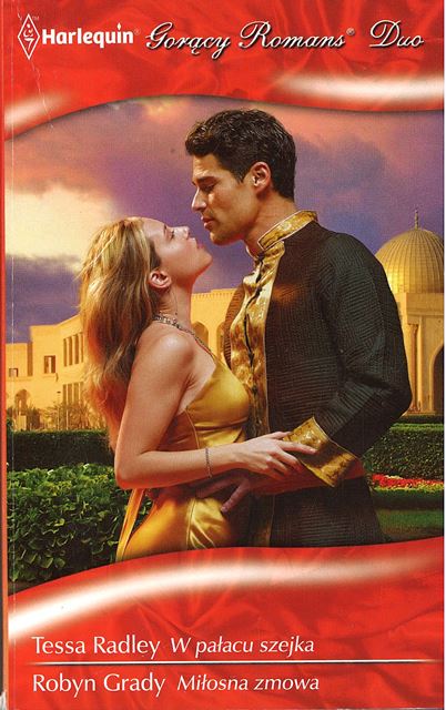 Tessa Radley - "W pałacu szejka" Książę Szafir otrzymuje od ojca trudne zadanie. Musi powstrzymać Megan Saxon, która jest podejrzewana o to, że zamierza zakłócić ceremonię zaślubin jego kuzynki. Książę obiera najkrótszą drogę do celu - rozbudza uczucia w pięknej kobiecie. Nie spodziewa się jednak, że sam może paść ofiarą swojego misternego planu i ulec namiętności... Robyn Grady - "Miłosna zmowa" Podczas swojej drogi na szczyty władzy i bogactwa Gage Cameron marzył jedynie o kobiecie, którą z własnej winy stracił przed laty. Teraz Jenna Darley jak nigdy przedtem potrzebuje jego pomocy. Musi odebrać z rąk bezdusznej macochy jedynego ocalałego z wypadku członka rodziny - maleńką siostrzenicę. Gage, szczęśliwy, że może Jennie wynagrodzić to, co się stało w przeszłości, oferuje jej swoją pomoc. Jednak stawka w tej grze okazuje się o wiele wyższa, niż przewidywał...