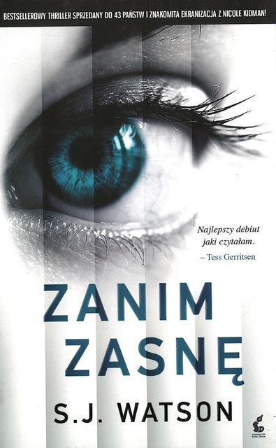 „Najgorsze, że nie wiem nawet, czego nie wiem. Może to być mnóstwo rzeczy i tylko czekają, żeby mi zadać cios.” Rewelacyjna książką! Mówiąc trochę kolokwialnie Watson odwalił kawał dobrej roboty!! Bardzo umiejętnie poprowadził czytelnika wykreowaną przez siebie drogą, która niewątpliwie strasznie uzależnia. Nie sposób było odciągnąć mnie od tej pozycji. Czytałam ją jednym tchem, nie mogłam przestać. Niesamowita, pobudzająca, wciągająca. Bohaterowie Zanim zasnę to osobowości wyjątkowo dobrze (wręcz idealnie) przedstawione. Bardzo wyraziste i barwne. To bardzo oryginalny i niebanalny thriller. A co najbardziej zaskakuje? Zakończenie oczywiście, trzyma w napięciu do ostatnich stron– nieprzewidywalne (bynajmniej ja się nie spodziewałam takiego finiszu), może wprowadzić czytelnika w osłupienie! POLECAM. POLECAM. POLECAM.
