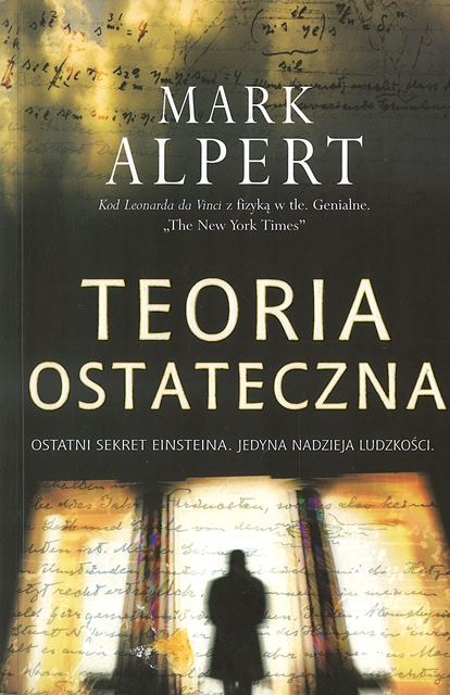 Czy ciąg szesnastu cyfr może zagrozić istnieniu świata? Tak, jeśli te cyfry są zapisem idei stworzenia broni zdolnej zniszczyć dosłownie wszystko. Światowej sławy fizyk, Hans Kleinman, jeden z asystentów Einsteina, umierając w szpitalu jako ofiara ciężkiego pobicia, wzywa swojego byłego ucznia i powierza mu tajemnicę. Od tej chwili David staje się zwierzyną łowną. Poluje na niego FBI, polują terroryści. Gdy w niewyjaśniony sposób giną dwaj inni współpracownicy Einsteina, David z pomocą dawnej koleżanki, profesor fizyki, postanawia rozwiązać zagadkę äostatecznej teoriiö. Czy zwykły człowiek jest w stanie pokrzyżować plany najbardziej wpływowych ludzi na świecie? Teoria ostateczna to thriller z elementami science fiction. Alpert nie szczędzi czytelnikowi drastycznych scen, ale łagodzi je wspaniałym poczuciem humoru. Nie zostawia suchej nitki na FBI, opisując brutalne przesłuchania i nieudolność funkcjonariuszy. Dostaje się też znanym politykom. Powieść zarówno dla wielbicieli thrillerów, jak i dla pasjonatów najnowszych odkryć naukowych.